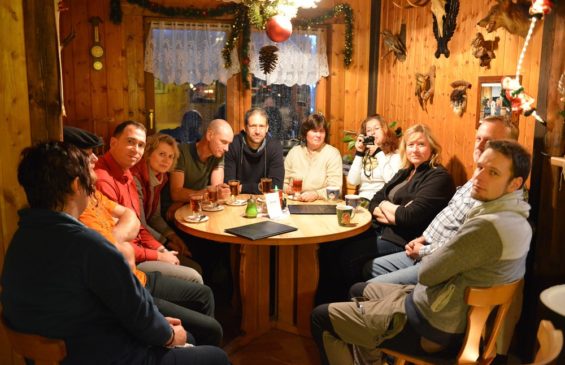Den ganzen Artikel ansehen…Am 11.12.2014 führte vgs zum Abschluss eines besonderen Jahres die traditionelle Weihnachtsfeier durch. Zuerst führten wir in Manebach eine Besichtigung der sehenswerten privaten Fossilien- und Mineraliensammlung von Herrn Lugert durch. Pünktlich zur Abendwanderung auf den nahe gelegenen Kickelhahn stellte sich herrliches Winterwetter ein, welches wir bei Fackelschein, Lagerfeuer und Glühwein ausgiebig genießen konnten, bevor es zum 3 Gänge Menü ging.