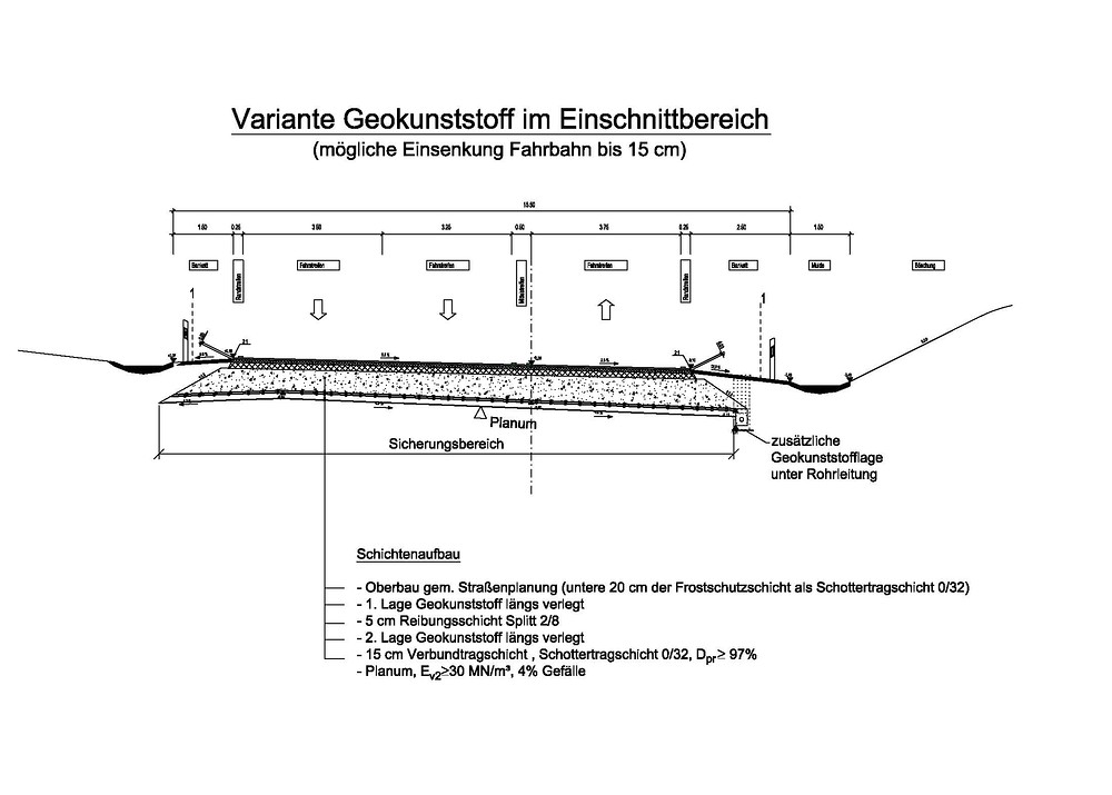 Im Zuge der ingenieurgeologischen Bewertung wurde festgestellt, dass wesentliche Streckenbereiche der geplanten Ortsumgehung in akut erdfallgefährdetem oder erdfallgefährdetem Gebiet liegen. Durch vgs wurden verschiedene Sicherungsvarianten aus technologischer und wirtschaftlicher Sicht gegenübergestellt.
